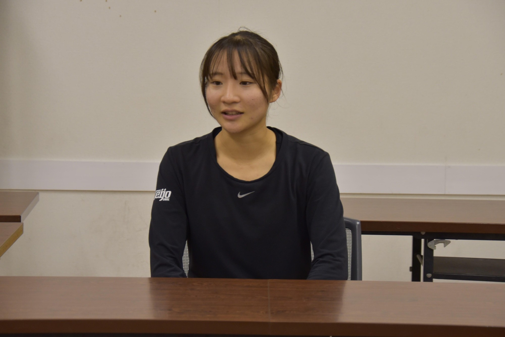 1年生ながら7月のワールドユニバーシティゲームズの10000mで4位入賞した細見選手は「(ここまで)想像以上の走りができて自分でも驚き。成長を感じる1年です」。中学3年生の時にテレビで見て名城大学の女子駅伝部に憧れたといい「日本一になることを目標に入学しました。粘り強さが強みで、長い区間を走りたいですが、どの区間になっても日本一に貢献したい」と力強く語りました。