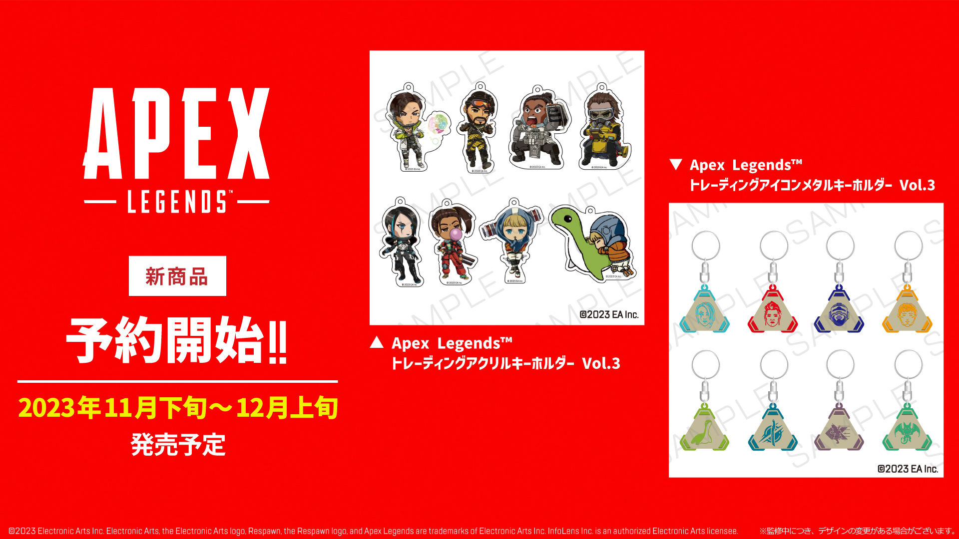 ゲーム関連商品を輸入・製造販売するインフォレンズ株式会社(本社:東京都中央区、代表取締役CEO:安川 洋)は、世界的人気バトルロイヤルゲーム「Apex Legends(TM)」公式グッズの新商品の予約を、2023年8月10日(木)から開始したことを発表します。