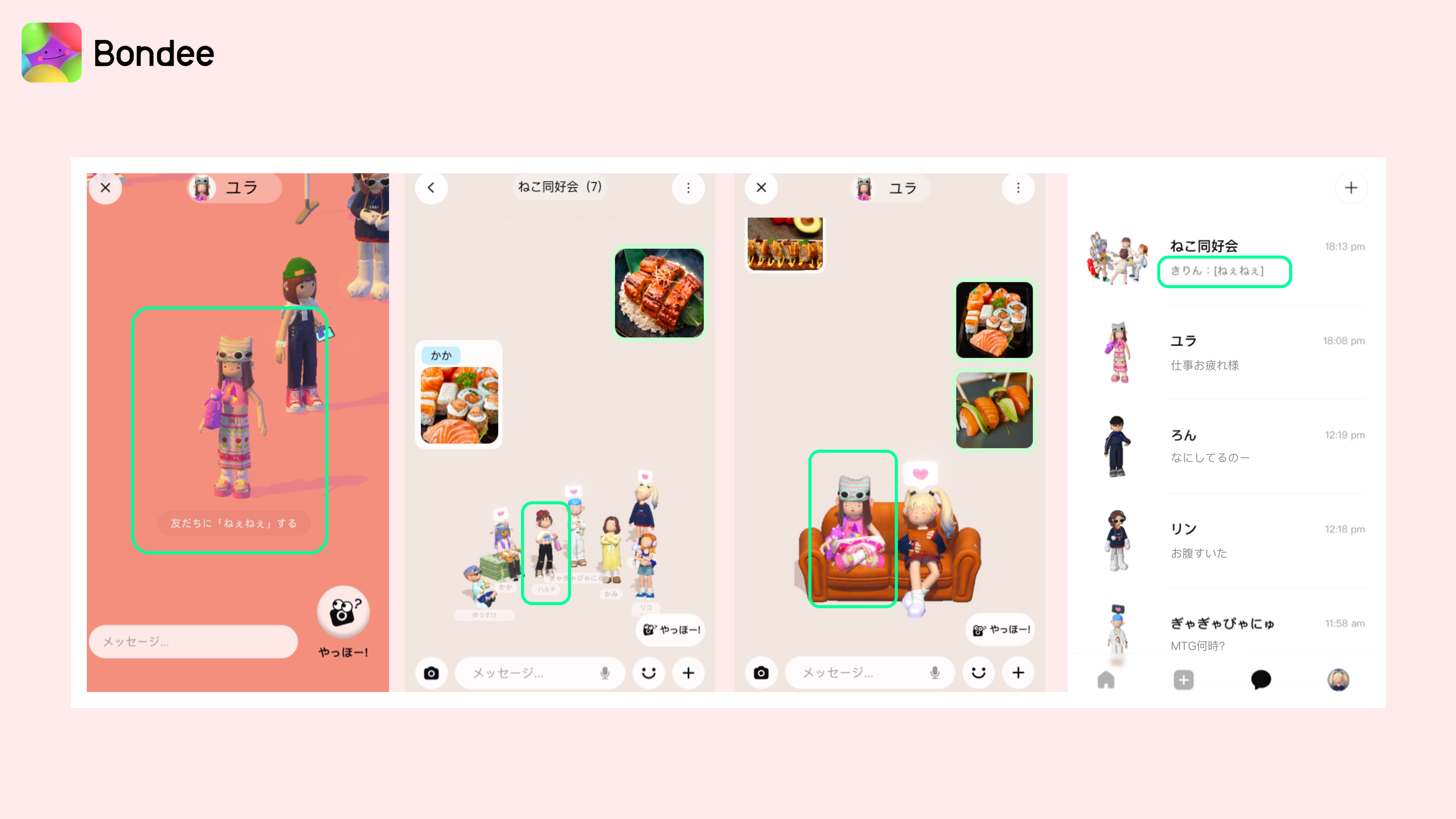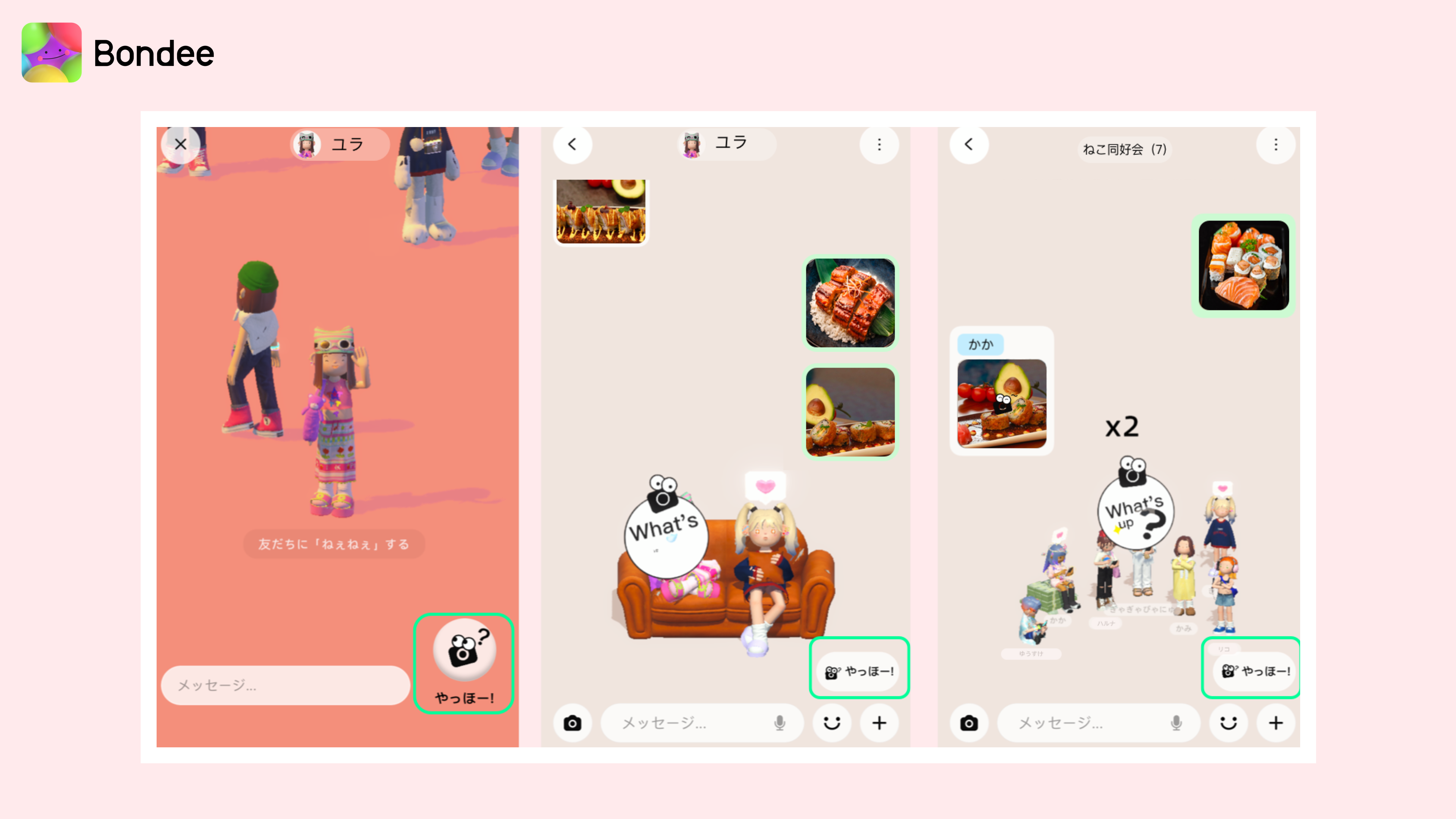 スマートフォン向け次世代メタバースSNS『Bondee ボンディー』の一部、人気機能についてご紹介いたします。
