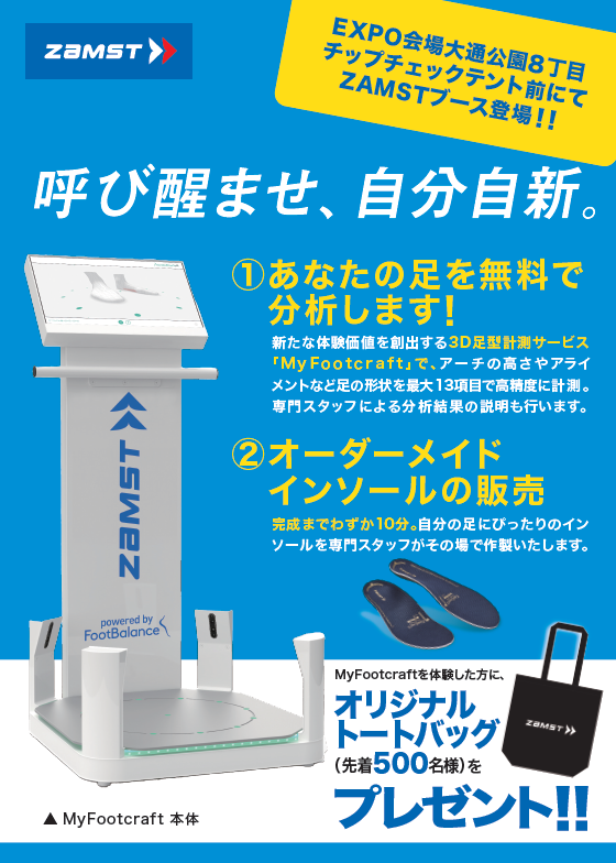 北海道マラソンEXPO(8/29-30)にて、ZAMSTブースを出展し、最新型3Dスキャナ「MyFootcraft」による無料足形計測や、オーダーメイドインソールの販売も実施します。