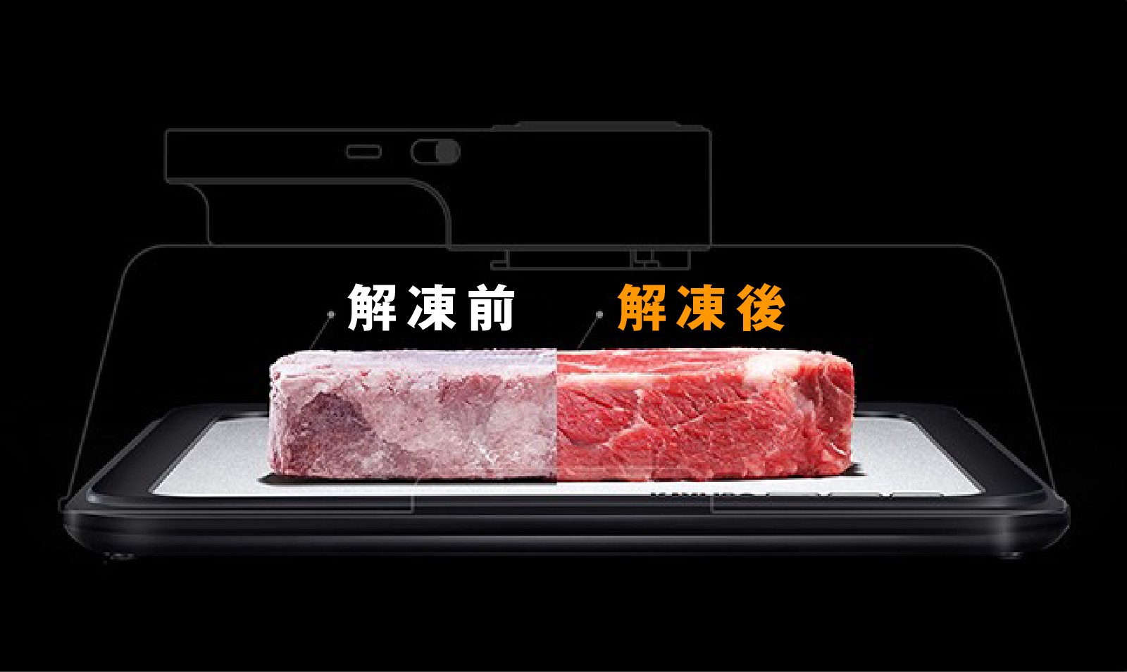 解凍プレートには、冷気をすばやく拡散する高品質なアルミ合金を採用。食材全体に均一に冷気が行き渡り、ムラなくスピーディーな解凍を実現します。