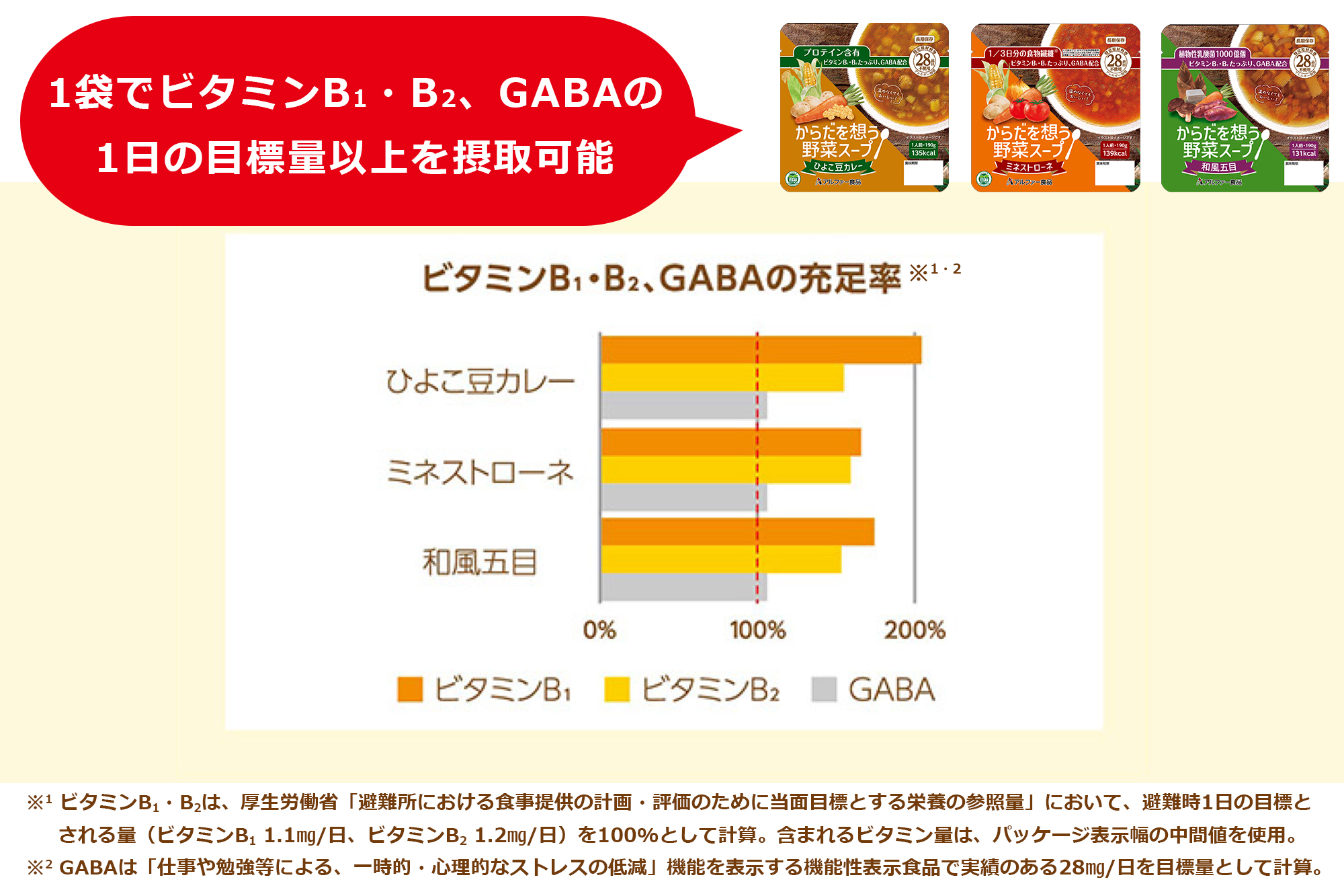 長期保存食『からだを想う野菜スープ』シリーズ新発売 ~避難時に不足しがちな栄養素や、 健康問題を軽減する成分をプラス~