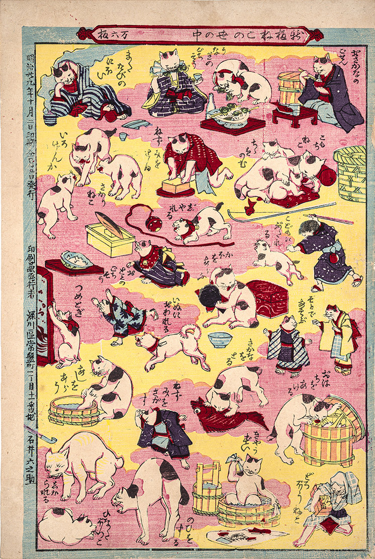 着物を着た擬人化された猫と、猫らしい猫が混在していて楽しい作品。