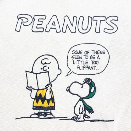 リボン部分がグリーンになったデザインも♪こちらにはフライングエースが描かれています。チャーリーブラウンもとってもキュートなんです♪文字部分はプリントですがキャラクターは刺繍なのも高級感があってプレゼントにもおすすめ!