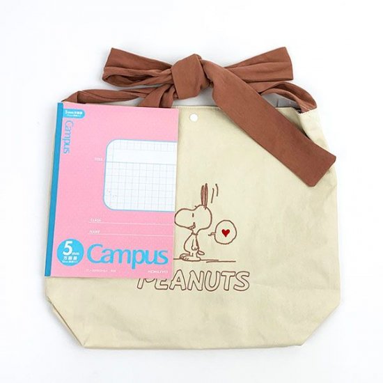 なんとまぁ、、、かわいいこと。持ち手がリボンになってるから最高にかわいいし、長さも調節できて便利!なスヌーピーのリボントート♡