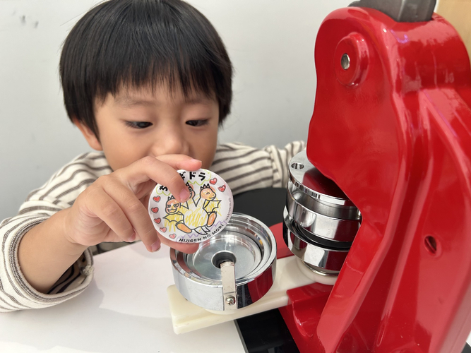 デザインはちびゴジラをはじめとした”ちび怪獣”たちの全5種類!可愛くて格好良いデザインされたぬりえに、好きな色をぬって、自分だけの“ちび怪獣”を描いてもらいます。そして、そのぬりえを缶バッジメーカーを使って、自分の手で思い出の缶バッジ制作を体験いただきます。帽子でも鞄でも!ニジゲンノモリで出会った、大迫力のゴジラの思い出を身に付けて楽しめること間違いなし!一生懸命に取り組む、はじめてのクラフト体験を「ゴジラ迎撃作戦」で挑戦しよう!
