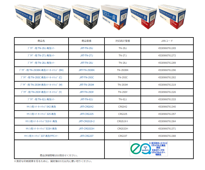 ジットは20年以上にわたりリサイクルインク事業を展開し、全国23,000か所以上に回収BOXを設置。使用済みカートリッジを回収・再利用することで、CO2排出や廃棄物を削減し、循環型社会の実現に寄与してきました。こうした取り組みは、日本カートリッジリサイクル工業会のE&Qマークによっても認められています。
