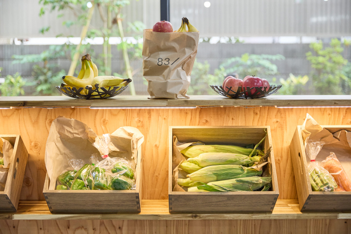 「やさしいジム」は、フィットネスを通じて「お母さんにいつまでも元気で笑顔でいてほしい」という想いから、 運動習慣がなく、ジムに抵抗のある女性にも気軽に通って頂けるよう、当ジムの会員は、1回30分の運動の後、 フロントのカウンターに陳列してある新鮮野菜・果物を専用の紙袋に入れて、毎日、お持ち帰りいただけます。
