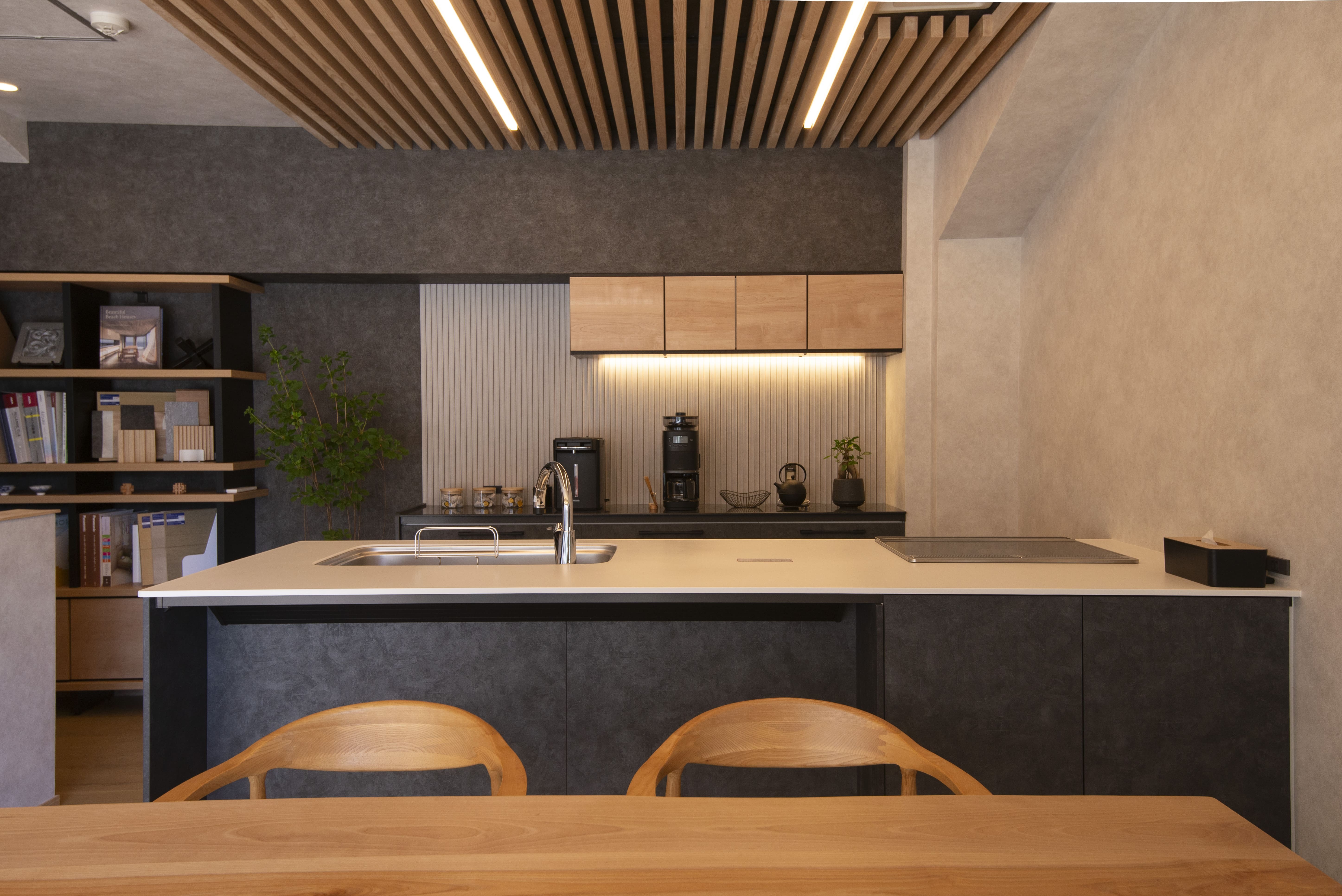*間接照明を取り入れた高級感ある空間:体感型ショールームとして落ち着いた雰囲気を提供。