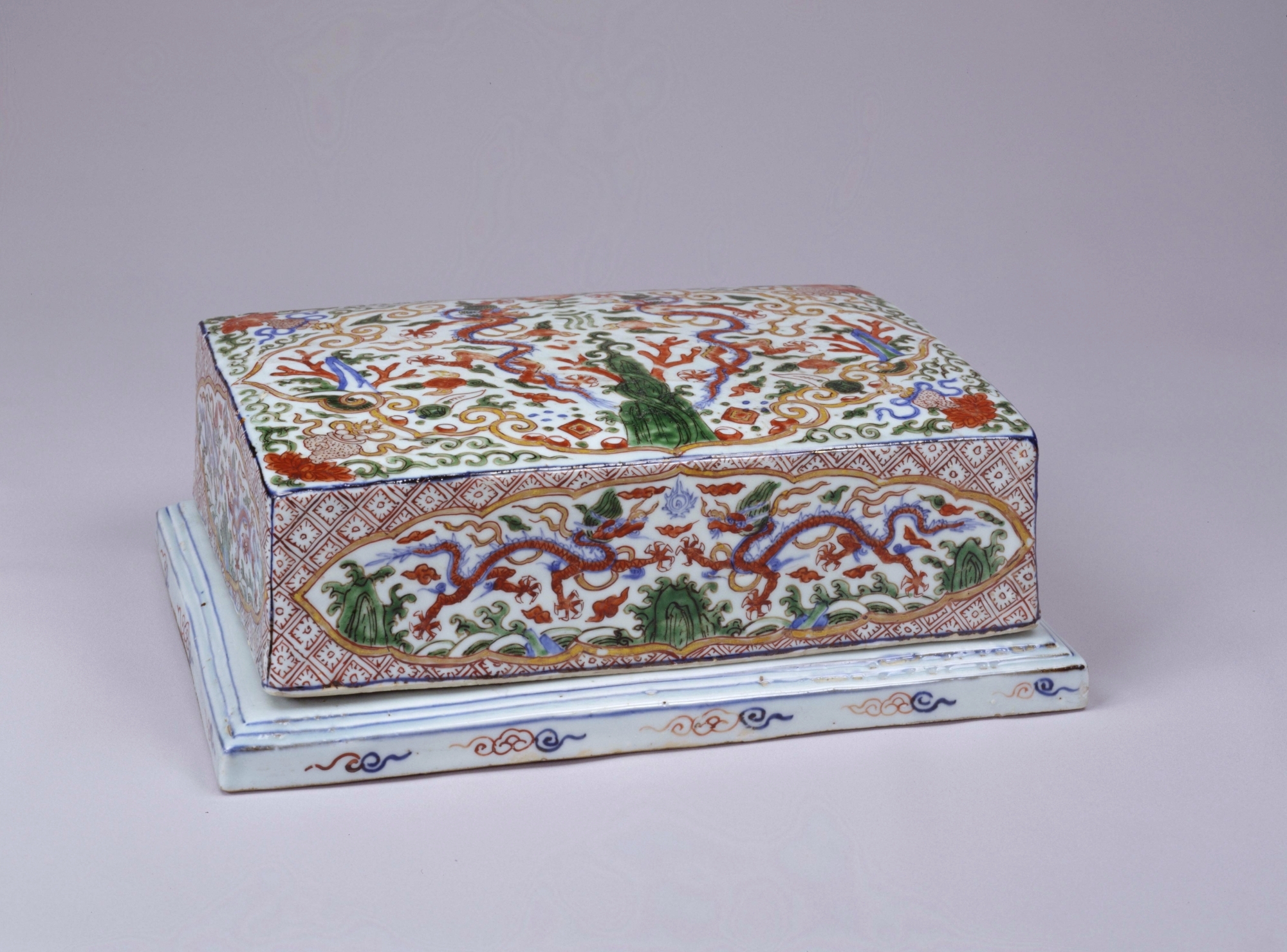 作品詳細:蓋表の各面には、皇帝を象徴するご五そう爪の龍のほか、岩や雲、波、花卉文(かきもん)、唐草文などがびっしりと描かれています。