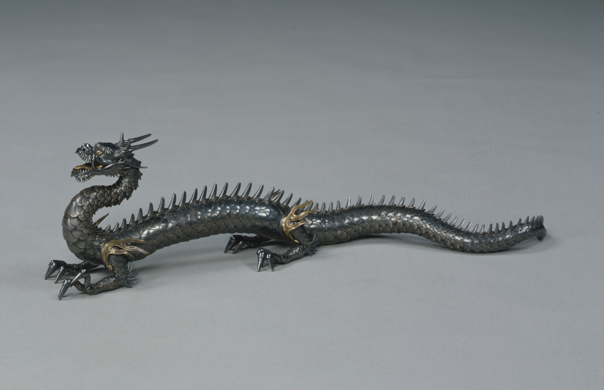 作品詳細:銀製の龍で、胴、脚、爪、口を動かすことができます。