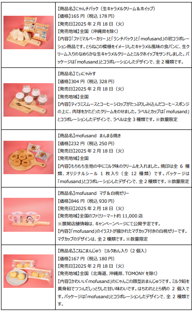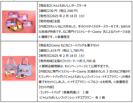 株式会社ファミリーマート(本社:東京都港区、代表取締役社長:細見 研介)は、継続して取り組んでいる5つのキーワードの1つである「『あなた』のうれしい」の一環として、2月22日の“ねこの日”に合わせて、ねこモチーフのデザート・パン・チルド飲料や日用品などのオリジナル商品21種類を発売する「ファミリ~にゃ~ト大作戦!」を、2025年2月18日(火)から全国のファミリーマート約16,200店にて開催いたします。