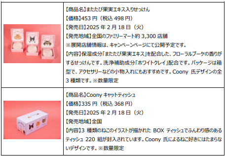 さらに、こちらも毎年大変ご好評をいただいている、ねこ専門イラストレーター「Coony(クーニー)」さん描き下ろしパッケージの商品を今年も発売いたします。肉球やねこ耳、ねこの表情を細部までこだわって再現した、ねこ愛あふれる「もふもふ」なオリジナル商品にご注目ください。
