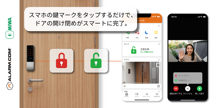 美和ロックのスマートロックがAlarm.comの住宅や商業施設向けセキュリティソリューションに対応することで、Alarm.comが既にグローバル市場で同社が提供するスマートロックの遠隔操作や履歴管理を日本国内においても利用できるようになります。また、Alarm.comのAIによる防犯カメラ映像の解析や異常行動の検知機能等のソリューションとシームレスに連携することで、新しいスマートセキュリティの提供が可能となります。
