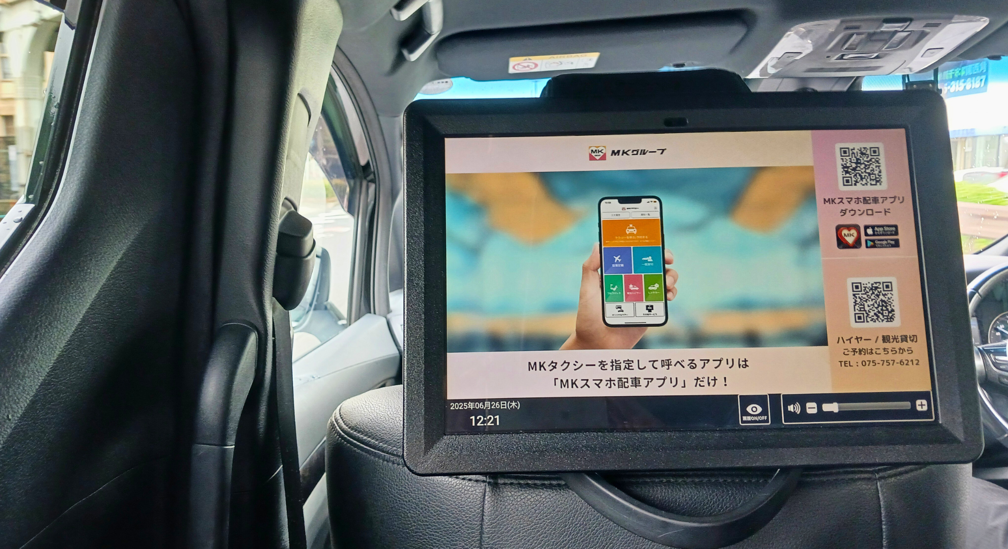 エムケイホールディングス株式会社(本社:京都市南区、代表取締役社長:青木信明)は、グループが展開する京都、名古屋、札幌、滋賀、4都市で月間数十万人規模の接触数があるMKタクシー車両の後部座席に設置されたモニターを活用し、車内デジタルサイネージ広告の出稿受付を本格的に開始しました。