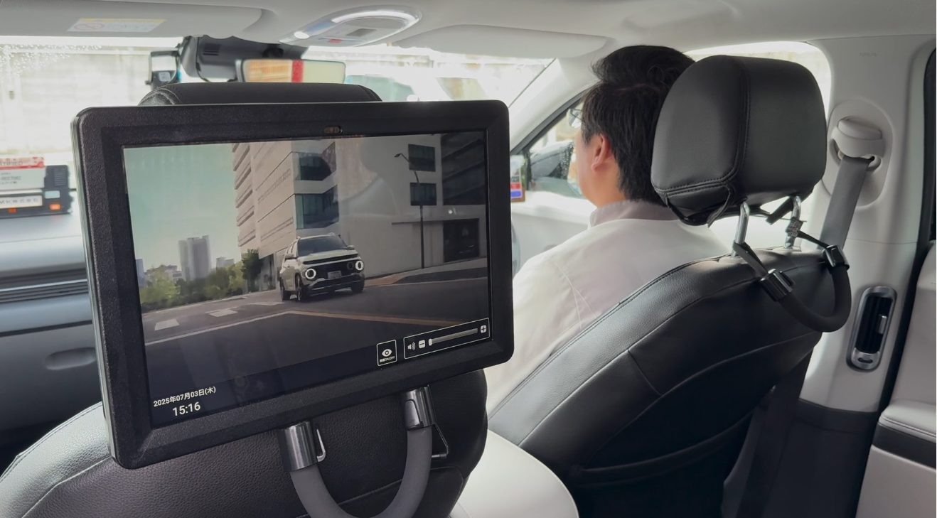 MKタクシーの車内デジタルサイネージは、後部座席の前方に設置された高精細モニターを通じて映像広告を配信します。