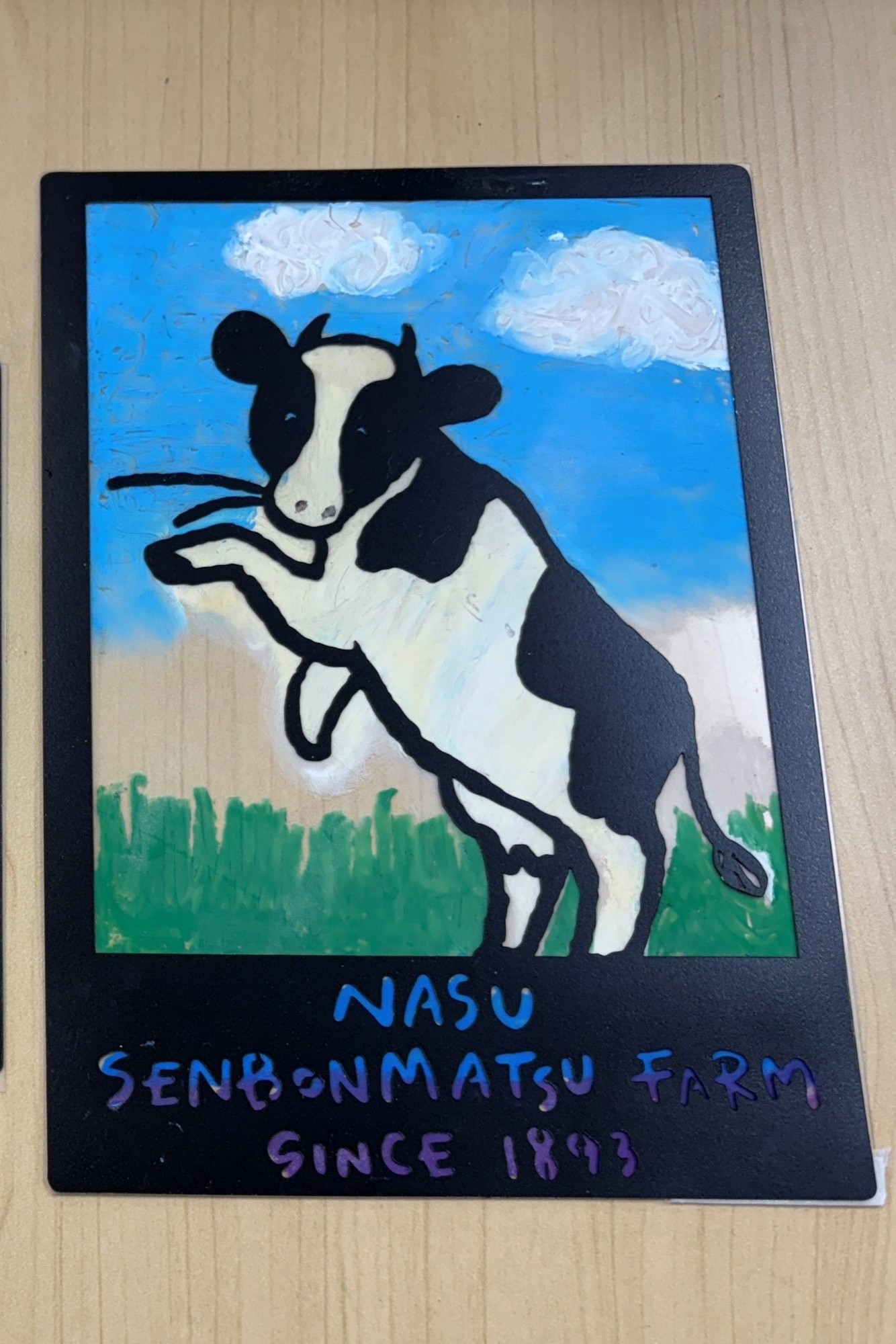 牧場公式キャラクター「おかあさん牛のセボン」の切り絵と透明シートを使い、カラフルに色をぬったあと、牧場の空や大地にかざして、自然と一体になった世界にひとつだけの光のアートを完成させます。