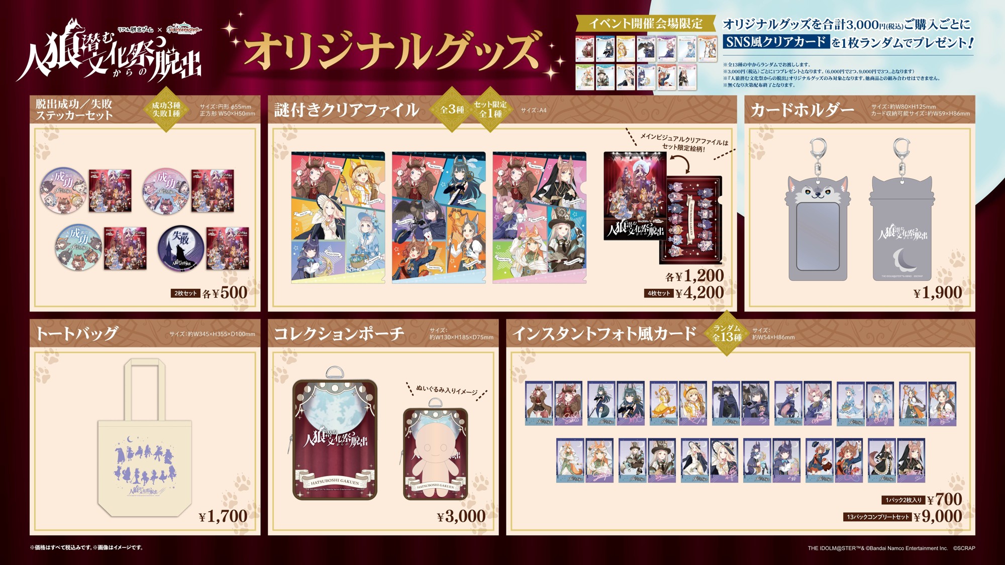 リアル脱出ゲーム×学園アイドルマスター『人狼潜む文化祭からの脱出』 オリジナルグッズ一覧
