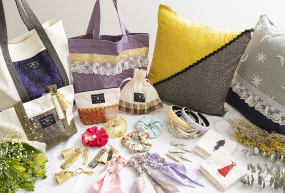 舞台衣裳用の布を一部使用して作られた商品(アップサイクルプロジェクト商品)や70周年記念グッズなど、ここでしか手に入らない商品を期間限定で販売します。竹芝を訪れる際や観劇に行かれる際はぜひお立ち寄りください。