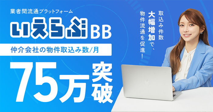 不動産業者間流通プラットフォーム「いえらぶBB」の物件取込み数が月間75万件を突破!