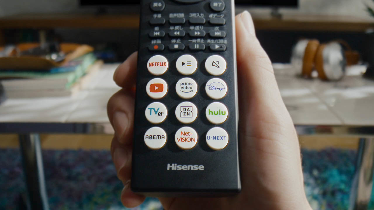 ハイセンスのテレビシリーズは、大画面・高画質はもちろんのこと、スマートフォンと連動する「スクリーンシェア」、さまざまなネット動画コンテンツとワンタッチでつながる「VOD」、AIが自動的に補正をする「AI高画質」と、これまでのテレビの枠を超えた「新しく」「便利な」「親しみのある」高品質を実現した商品です。