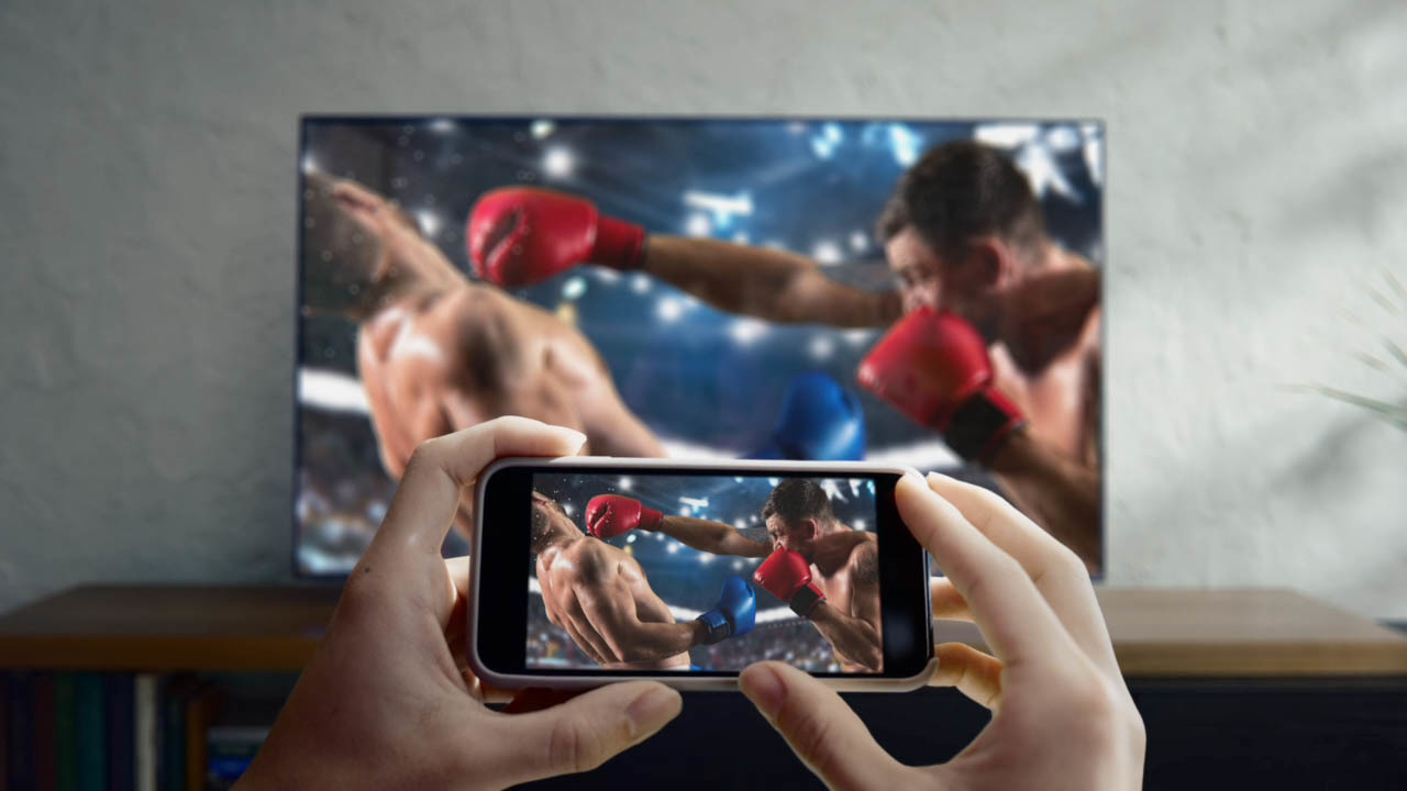 イヤホンをしながら、スマートフォンを片手に買い物から帰宅した横浜流星さん。リラックスした表情の横浜さんはスマートフォンを見ながらソファに座り、イヤホンを外します。そして横浜さんの視線はスマホからテレビに。テレビのリモコンのスイッチを押すと、大画面のテレビには横浜さんがお好きなボクシングの写真が映し出されます。縦型で映し出された写真は、横浜さんのスマートフォンの操作で横型になり、さらにはボクサーの躍動するシーンをアップに。横浜さんが、スマートフォンと連動する「スクリーンシェア」を、笑顔で手軽に楽しむ姿を見せます。