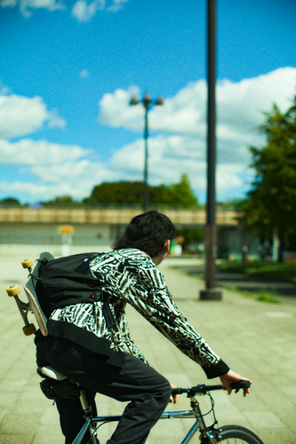 元プロスケーターというバックボーンを持つ彼が、スケートと同じくらいこよなく愛す乗り物が自転車。彼が産まれたサンフランシスコは、かつてクロームの拠点があった街でもある。そんな共通のルーツを持ちながら、ファッションとギアという別の道を歩んでいた両者が交わった時に起きる化学反応が新しい風を巻き起こす。