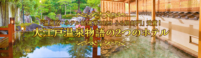 大江戸温泉物語ホテルズ&リゾーツ株式会社(本社:東京都中央区、代表取締役:橋本啓太、以下 大江戸温泉物語)が運営する長野県と山梨県にある2つのホテルが、11月7日に結果発表された「温泉宿・ホテル総選挙2023 中部地方 うる肌部門」において栄えある1位と2位を受賞いたしました。