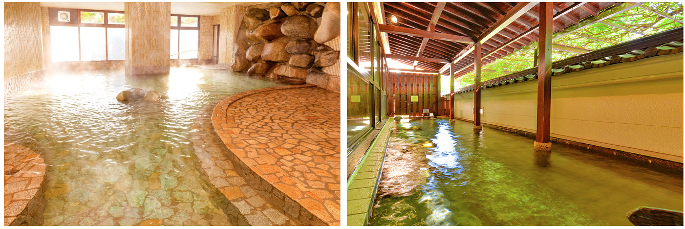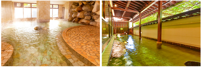 広々とした内湯や木漏れ日が差し込む半露天風呂、また手入れの行き届いた庭園にある足湯でも折り紙付きの泉質をお楽しみいただくことができるため、お客様はチェックイン直後の15:00過ぎからご夕食前後、また翌日早朝、そしてチェックアウト直前まで、時間帯を問わず、滞在中に何度でもその泉質を堪能されています。