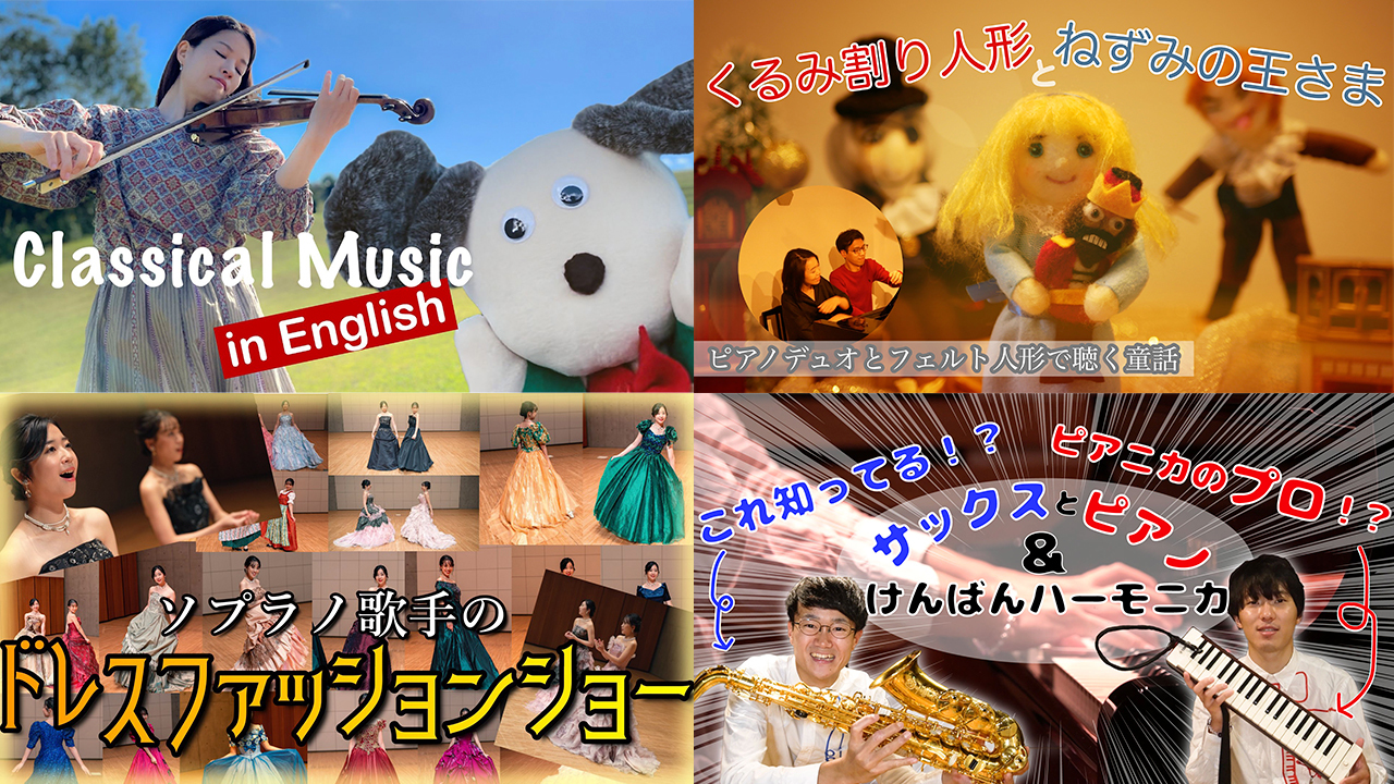 今回の採用企画で登場する楽器はピアノや弦楽器、金管・木管楽器、声楽など多岐にわたります。アニメーションとのコラボレーション企画や、視聴する子どもたちも参加できる企画、音楽を通して英語に親しむことができる企画、音楽家の衣装をクローズアップした企画、演奏家自身のナレーションによる解説付きの企画など、若手演奏家による新しい時代の音楽コンテンツに相応しい創意工夫に富んだユニークさに溢れています。また、動画の視聴対象年齢も未就学児向けや小学生向け、中高生向けなど細かく設定されており、年齢や好みに合わせて視聴を楽しむことができます。