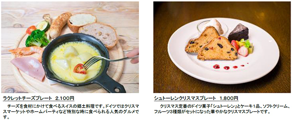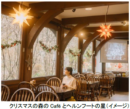 併設の森のCafe(※1)で、「ドイツのクリスマス」をテーマに、ドイツの伝統菓子やクリスマスマーケットなどで親しまれるメニューなどを販売します。冬景色やヘルンフートの星*2などのクリスマス装飾を眺めながら屋内席で温かく過ごせます。