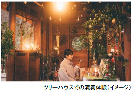 ツリーハウスをクリスマス限定装飾で彩ります。ガーデンの冬景色を眺めたり、ハンドベルの演奏体験が楽しめます。