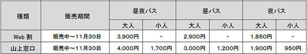【料金】上記、夜パスまたは昼夜パスのとおり