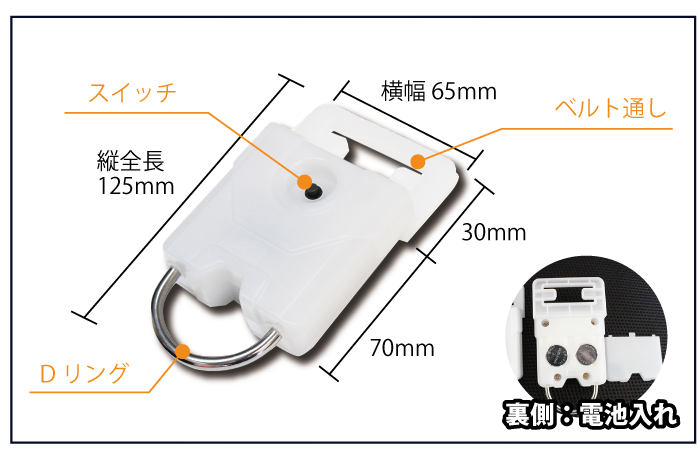 安全帯のフックを掛けるという手順を行うだけで製品本体に内蔵されたLEDランプが点滅します。