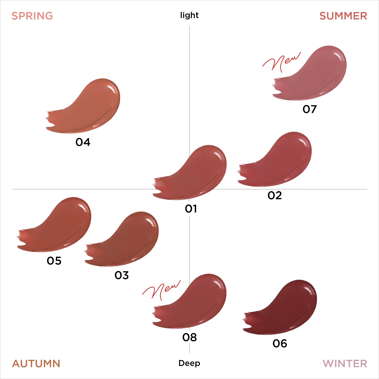 ・軽やかなテクスチャーでやさしく包み込み、どんな角度からでもツヤと透け感のある唇を彩ります。