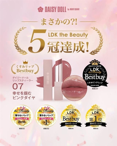 株式会社クラブコスメチックス(本社・大阪市 代表取締役社長:中山ユカリ)はDAISY DOLL by MARY QUANTから展開する『**デイジードール リップ スティーラー 07 幸せを掴むピンクダイヤ』が、コスメを本音で評価する人気美容誌「LDK the Beauty」(株式会社晋遊舎)2025年10月号において「くすみピンクリップ部門」ベストバイ**を受賞いたしました。