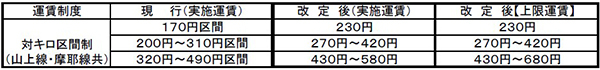 当社は(対キロ区間制)乗車したキロ数に応じて上限運賃額を算出する制定形態です。