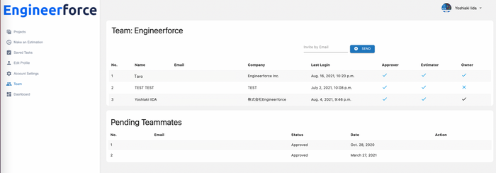 ③チームの作成(見積もり工数の共有範囲を任意に設定できます)