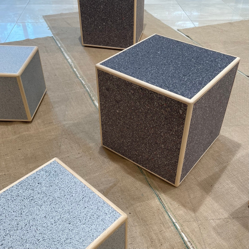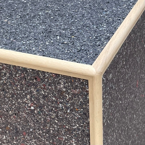 リサイクルが困難な廃棄衣類繊維を独自のマテリアルリサイクル方法(国際特許出願中)で美しくアップサイクルし再資源化します。廃棄衣類繊維をボード化することにより、廃棄衣類繊維を家具等の様々なプロダクトによみがえらせることができ、廃棄予定の衣類繊維に新な価値を付加して社会に還元します。衣類繊維の独自のマテリアルリサイクル方法を通して、深刻な衣類繊維廃棄物の削減と循環型社会の構築に貢献します。