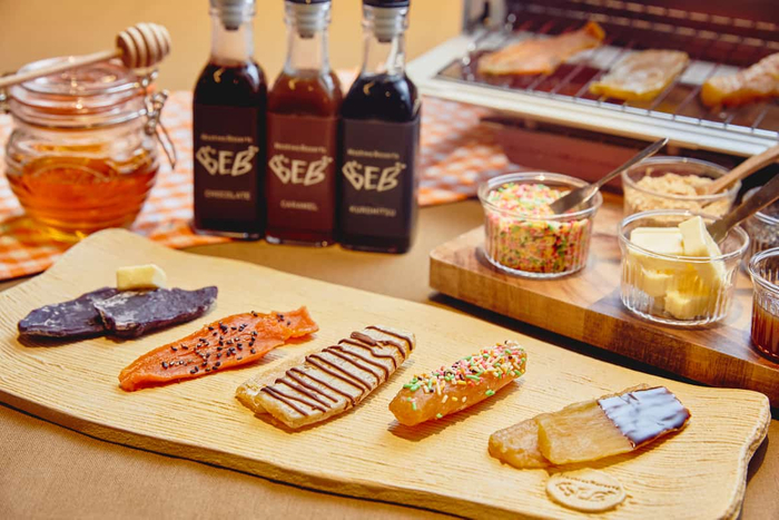 干し芋食べ比べセットがパワーアップします。干し芋とトッピングがセットになっており、今年は10種類の干し芋から好きなものを5種類選んで楽しむことができるようになりました。品種や加工方法の異なる干し芋をバターやハチミツ、チョコレートソースといったお好みのトッピングと組み合わせたり、トースターで温めたりすることによって、さまざまな味わいや食感を楽しめます。