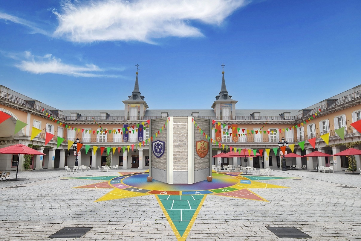 オレンジ色の壁に四方を囲まれた「マヨール広場」には、『ポケットモンスター スカーレット・バイオレット』(以下『ポケモンS・V』)に登場する街「テーブルシティ」のバトルコートが登場。また、『ポケモンS・V』に登場する「オレンジアカデミー」「グレープアカデミー」をイメージした装飾も施される予定です。