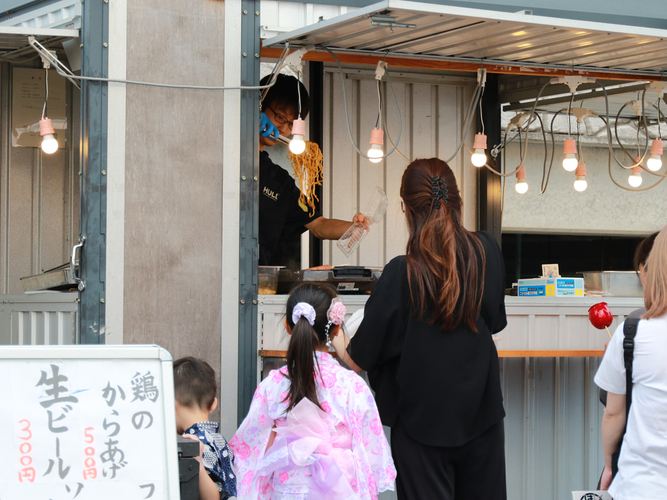 会場にはかき氷やクラフトビールなど、夏祭り気分を盛り上げるキッチンカーコーナーも出店予定。 遊んで・食べて・花火を見て、家族でたっぷり夏を満喫できる空間をお楽しみください。