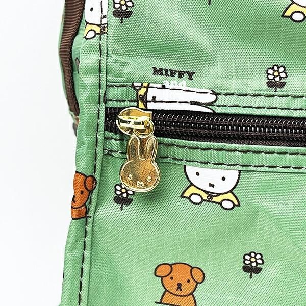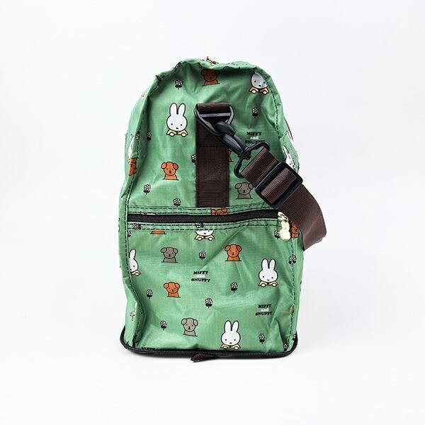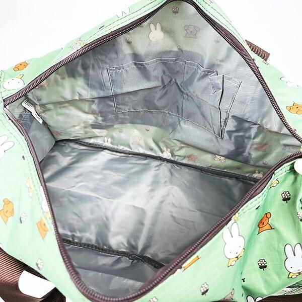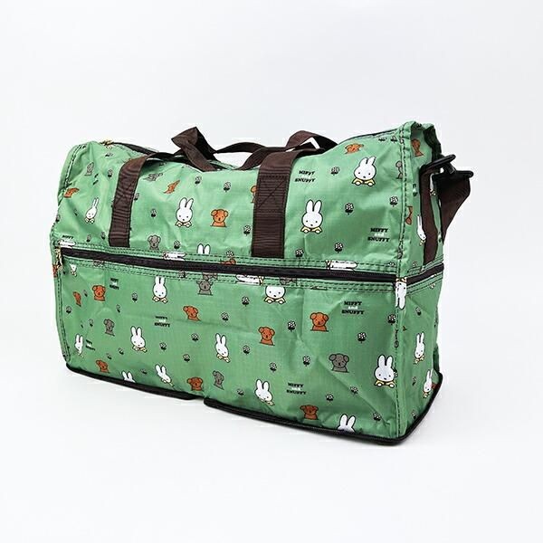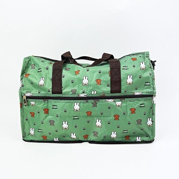 まずはこちら、 **ミッフィー&スナッフィーの折りたたみボストンバッグ(M)** です。落ち着いたグリーン地にミッフィーとスナッフィー、それに可愛いお花が散りばめられていて持っているだけで心が和みそう。