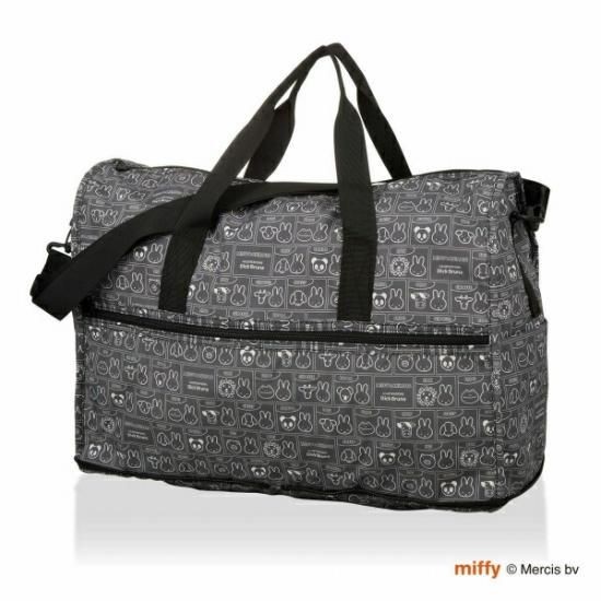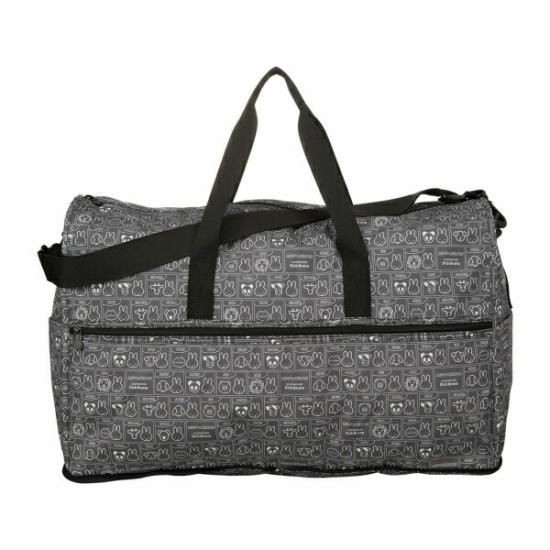 続いては **MIFFY&ANIMALS 折りたたみボストンバッグ(M)** です。落ち着いたグレー地に白のイラストだから、さっきのグリーンのものよりちょっと大人な雰囲気ですね。