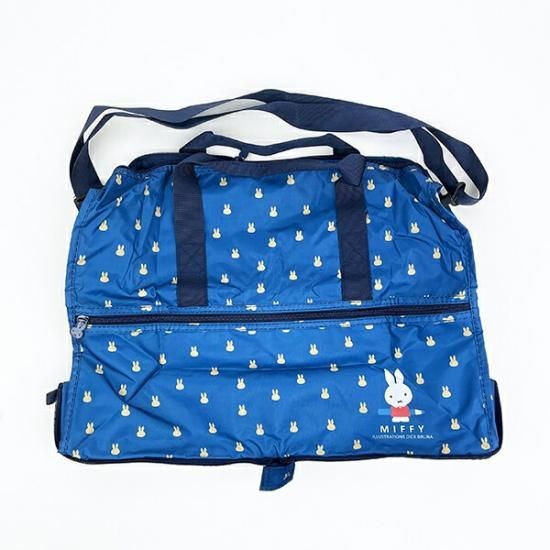 少し形が変わりますが、こちらも折りたたみが可能なボストンバッグです。明るいネイビーカラーに散りばめられたミッフィーちゃんシルエットがオシャレ~!
