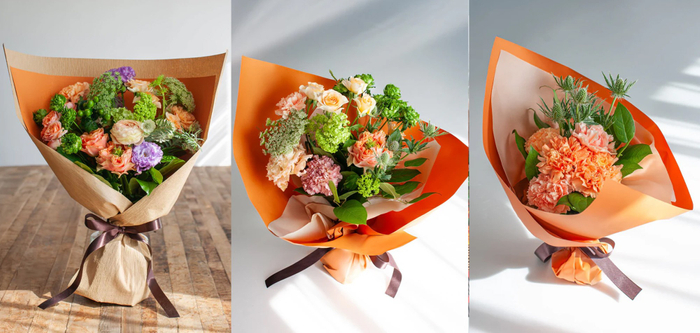 そこで当社は、豊富な国産花材を厳選し“ライトオレンジ×ピンク”のグラデーションで仕上げた「Gentle Glow」を開発。贈ったら褒められる花束として、・ボックスを開けるだけで思わず笑顔になるクオリティ