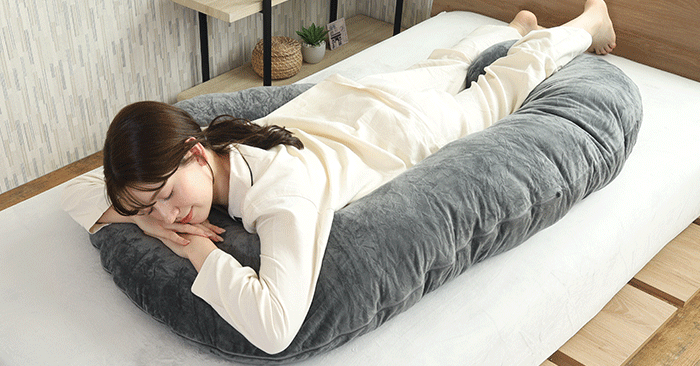 150cmの大型設計により、横向き寝時に頭部から足先まで身体全体を優しく包み込みます。肩・腰への圧迫を軽減し、横向き寝による身体の負荷を効率的に分散させることで、質の高い睡眠をサポートします。
