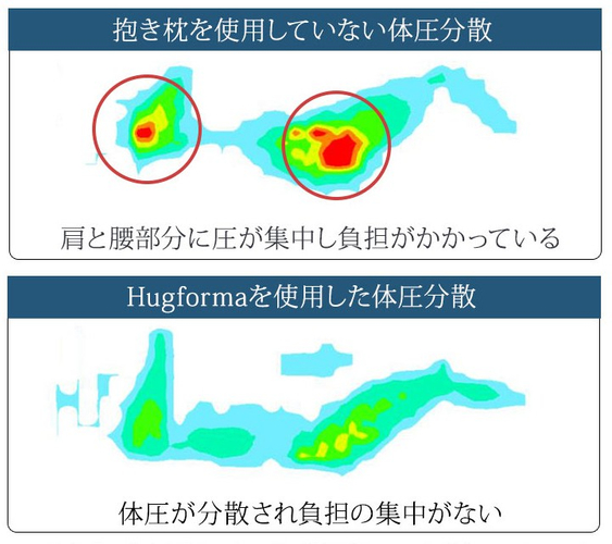 ベッドは下から支える。この抱き枕は全方向から支える「床面+抱き枕」。