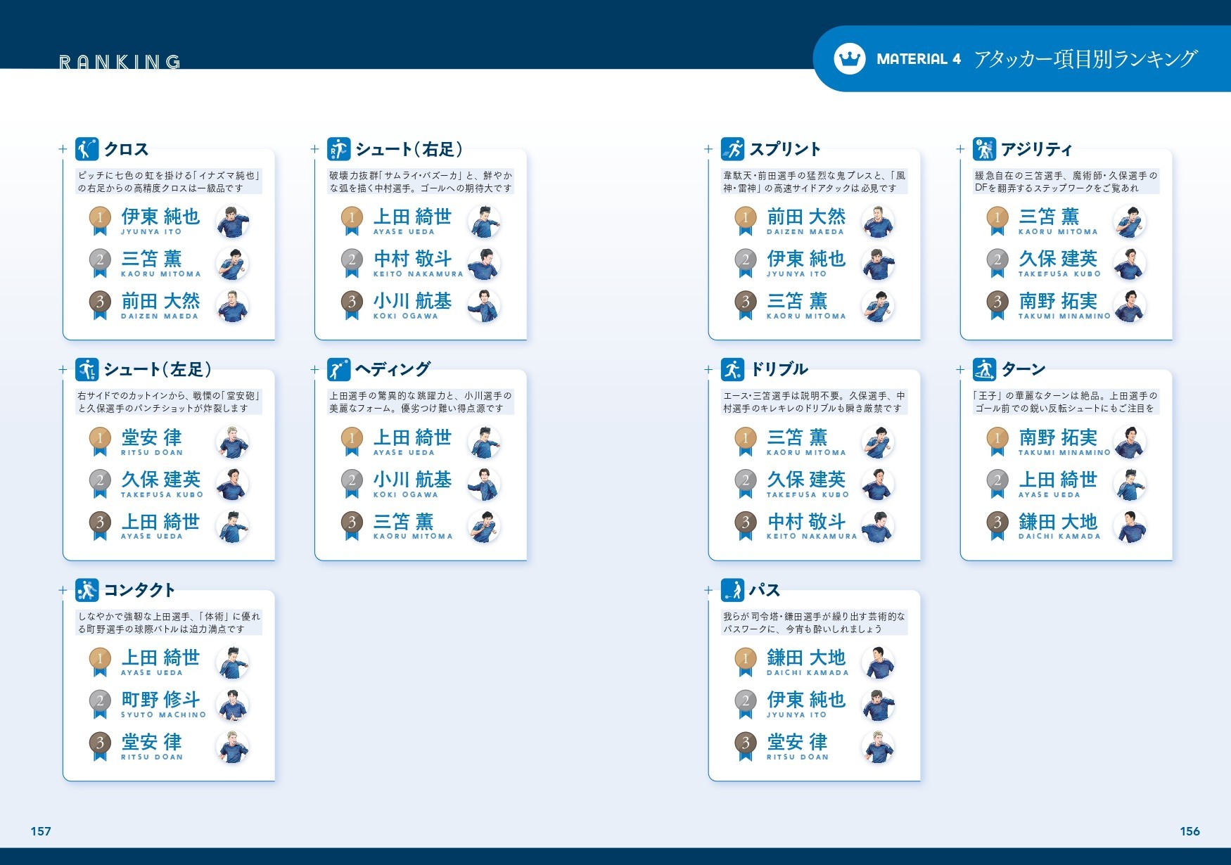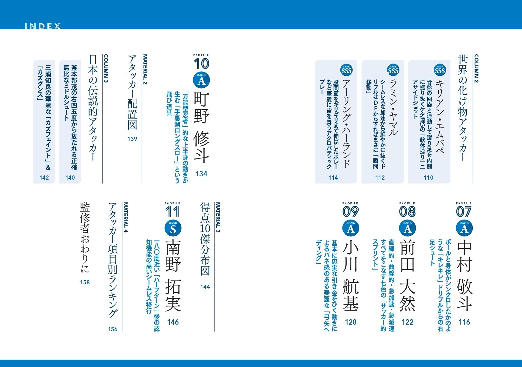 超一流アタッカーの身体動作はなぜあれほどまでに美しく、そして語りたくなるのでしょうか? 史上最強との呼び声が高いサッカー日本代表アタッカー11人の「動作的特徴」と「身体的特徴」を徹底的に解析し、約100点の動作・身体イラスト&アイコンを駆使しながら、それぞれのすごさを余すことなく言語化した唯一無二の身体動作解析本です。