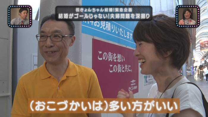 先日SNSで、タレント・まつきりなさんとの結婚と、今秋父親になることを報告したきょん。きょんちゃんには夫婦円満な家庭を築いて欲しい!ということで緊急企画が始動。その名はズバリ「結婚がゴールじゃない論争!」 夫婦にありがちな困ったことを街中で調査。夫婦のイロハを学んでもらいます!